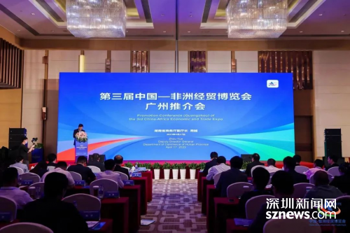 读特客户端•深圳新闻网2023年4月20日讯 4月17日下午,第三届中国—非洲经贸博览会推介会在广州举办。商务部外贸发展局副局长陈华明、湖南省商务厅副厅长周越出席。广东省商务厅、非洲广东总商会、粤港澳大湾区相关商协会、外贸出口产业集群和中非贸易知名企业代表120余人参会。