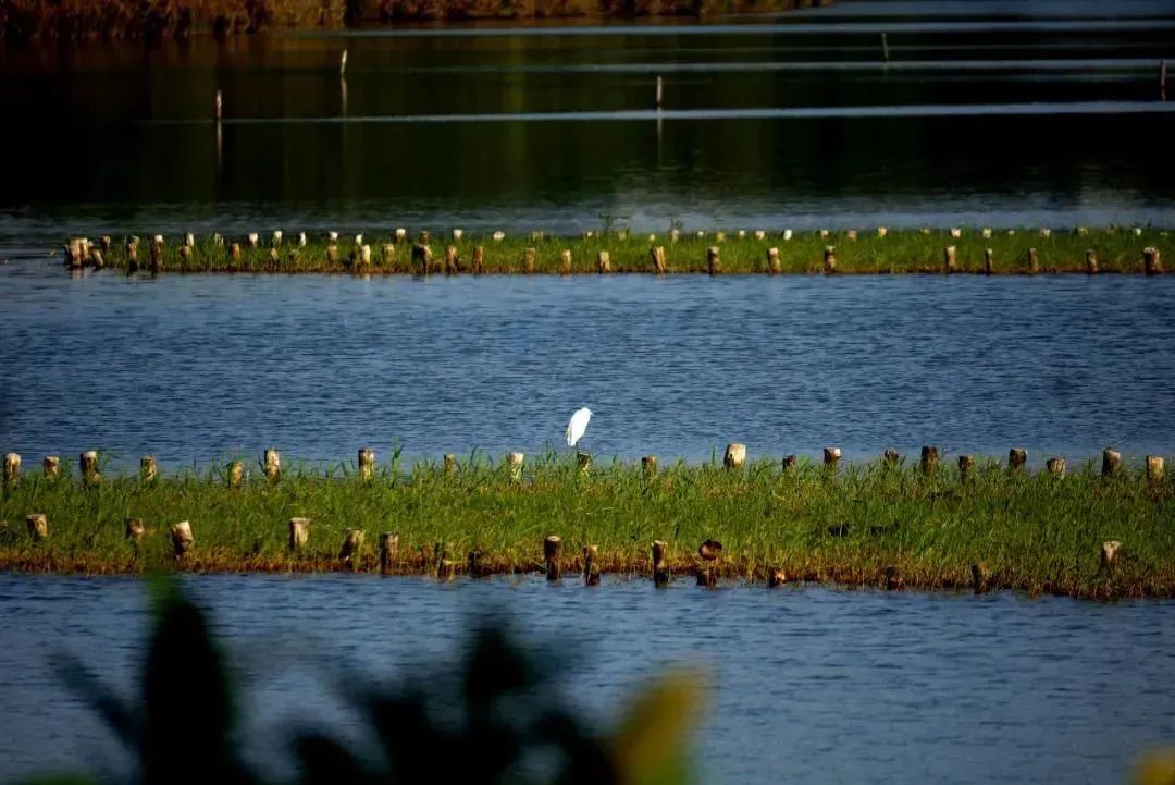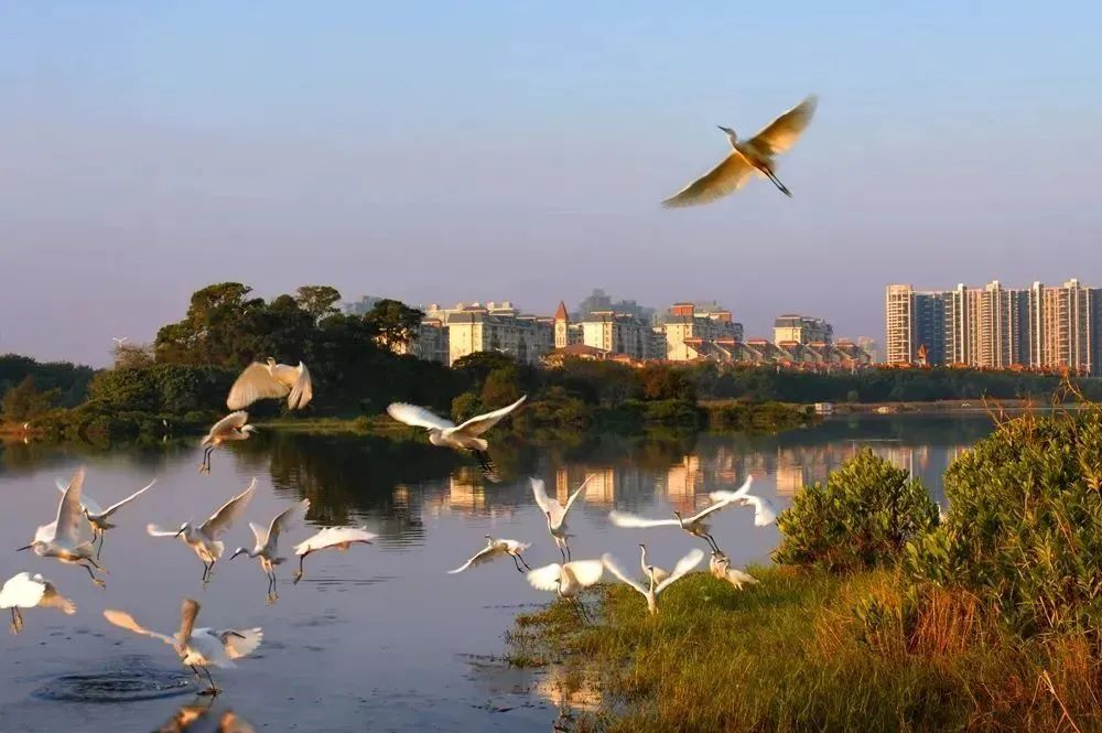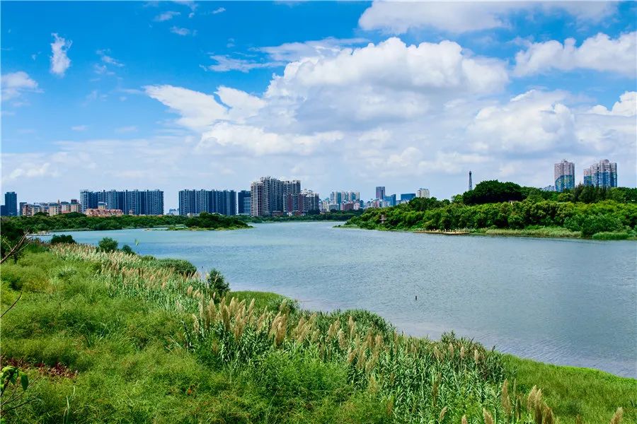 宽阔的水面、大片的芦苇荡、葱郁的红树林
