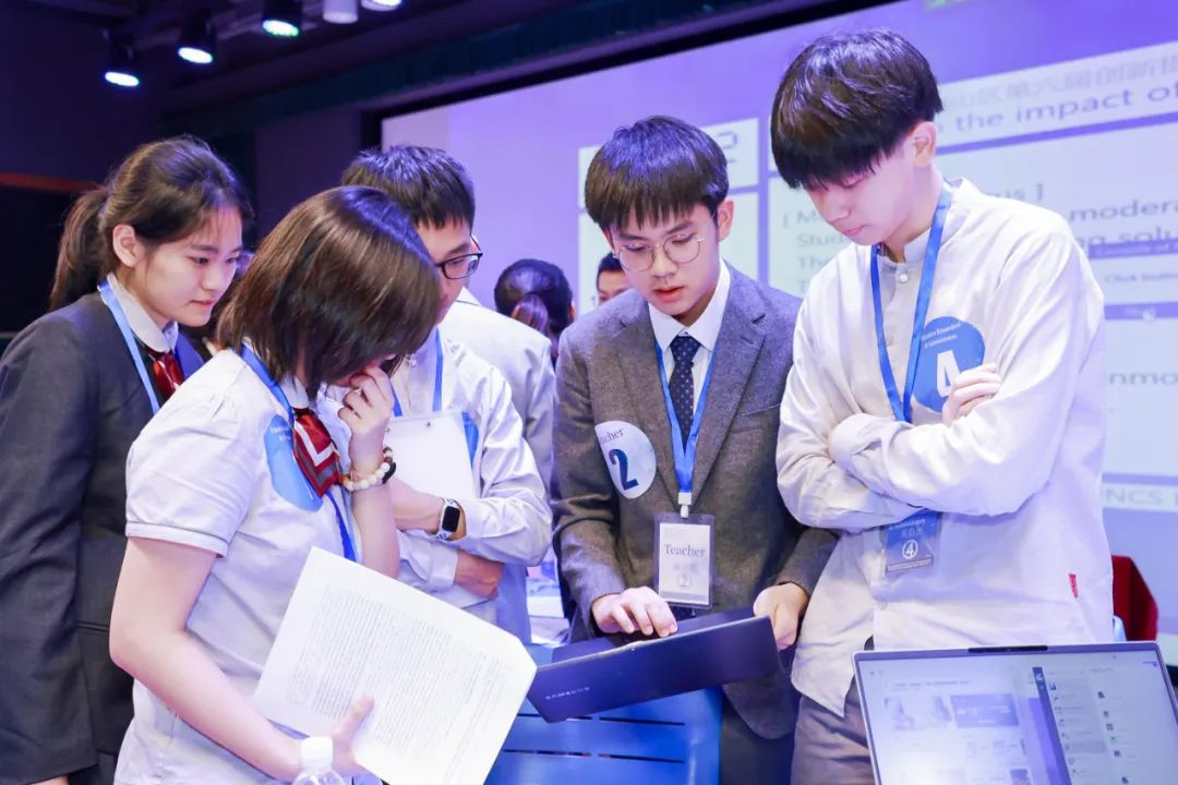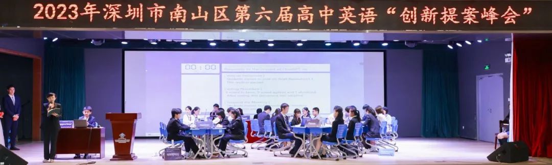 本次高中英语创新提案峰会由南山外国语学校(集团)高级中学承办。该校为大会设计了富有科技感的体现共同主题且具有角色区分的6套桌牌、手牌、胸牌、号码贴以及观察员、记者、志愿者的胸牌和参会手册等,无论是场上的选手还是现场接待的志愿者都体现了极高的综合素养,保证了会议的顺利进行,得到了与会嘉宾、评委和老师们的一致好评。