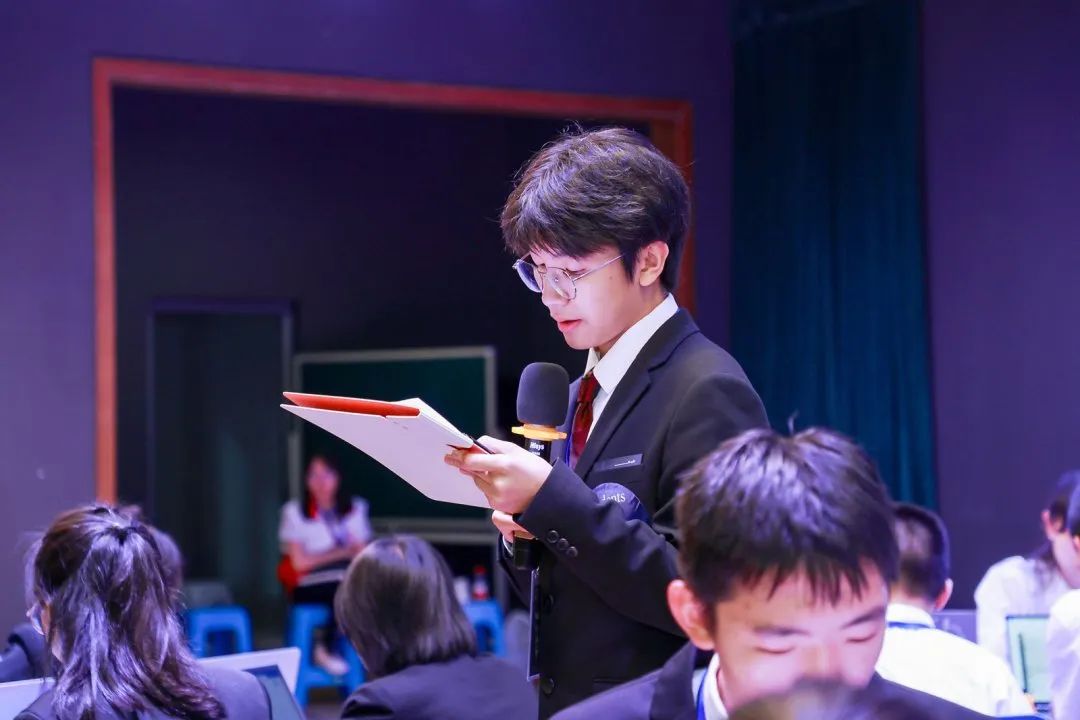 南山区共6支高中代表队、24名优秀选手参加了本次活动。各校与会代表分别以对等身份对议题进行阐释与探讨,积极寻求合作与解决方案。会议采用国际通行的“罗伯特议事规则”,即在讨论过程中不断会有代表提出动议,由大会主席进行有组织核心磋商,代表也可以提出无主持核心磋商,在主发言名单和磋商之间不断交换的过程中,代表们就这个议题形成自己的观点,产生出工作文件,即模联中的决议草案。