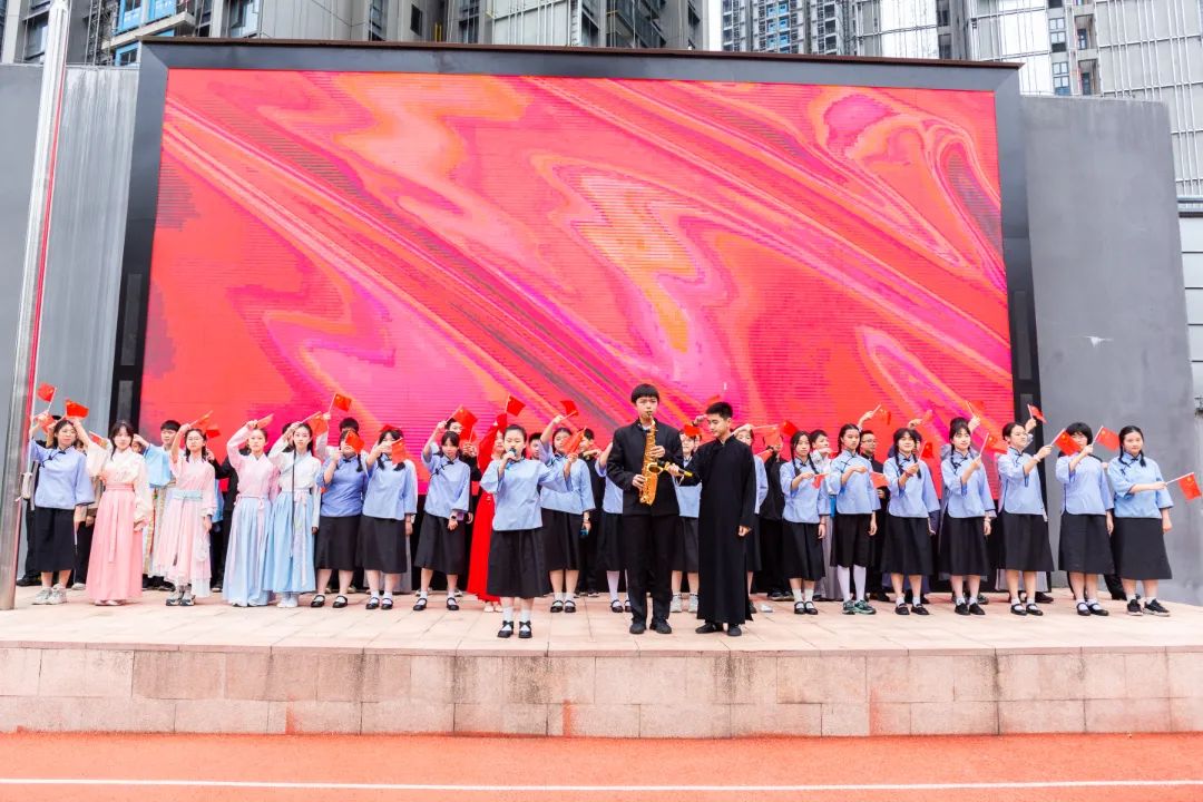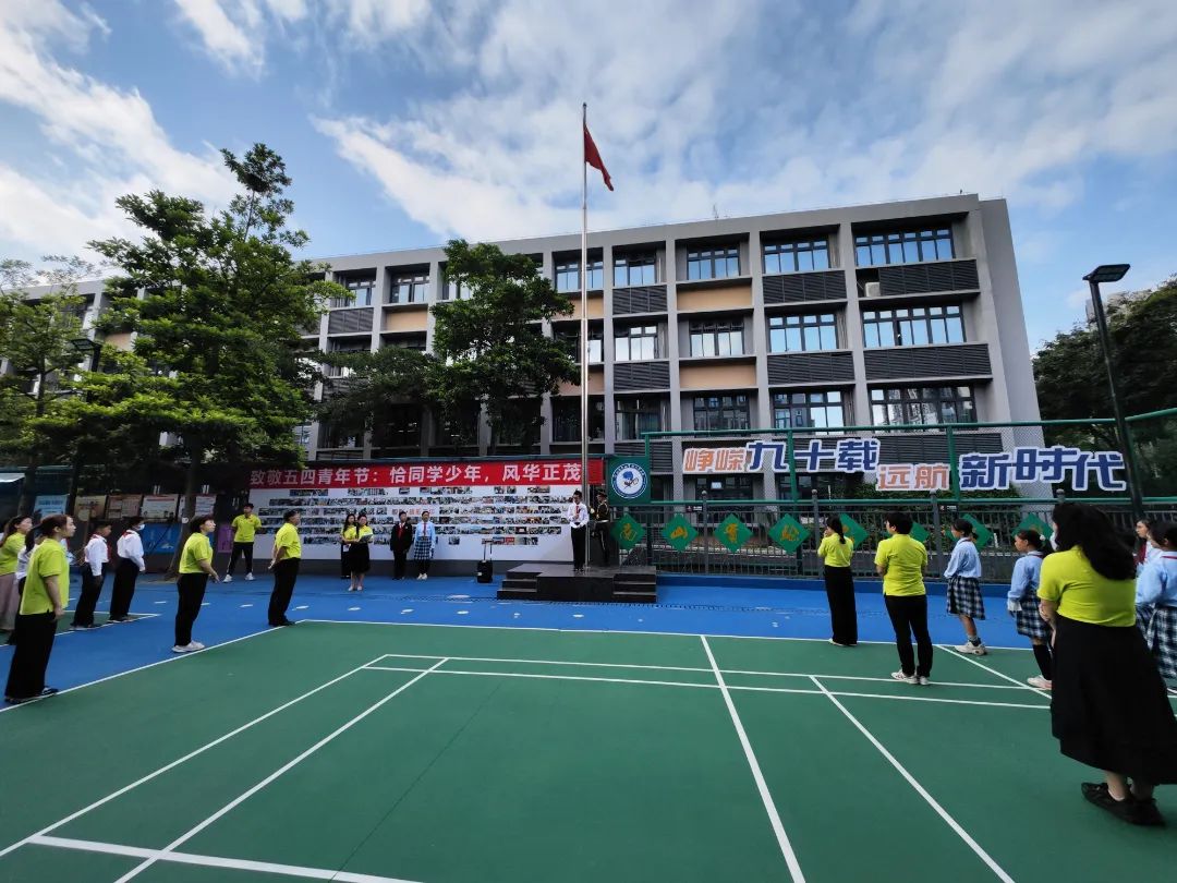4月24日,深中南山创新学校在国旗下举行“传承华夏经典,弘扬五四之志”主题汇演活动。学生团员及青年学生以歌舞诉说爱国情,以游行感念报国志,传递着新青年向未来的坚定信心。