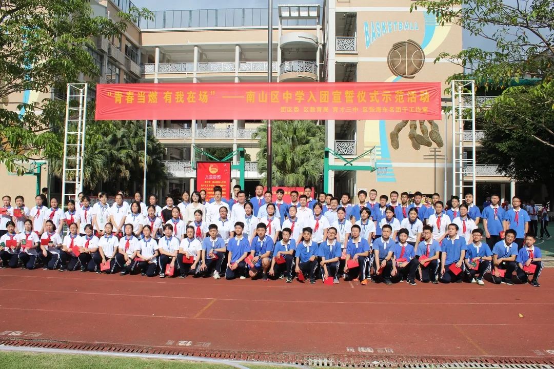蛇口育才教育集团育才三中举行“青春当燃,有我在场”南山区中学新团员入团宣誓仪式示范活动,团区委、教育局、教育团工委领导出席了活动,在现场共同见证着又一批优秀青年光荣地加入中国共产主义青年团。