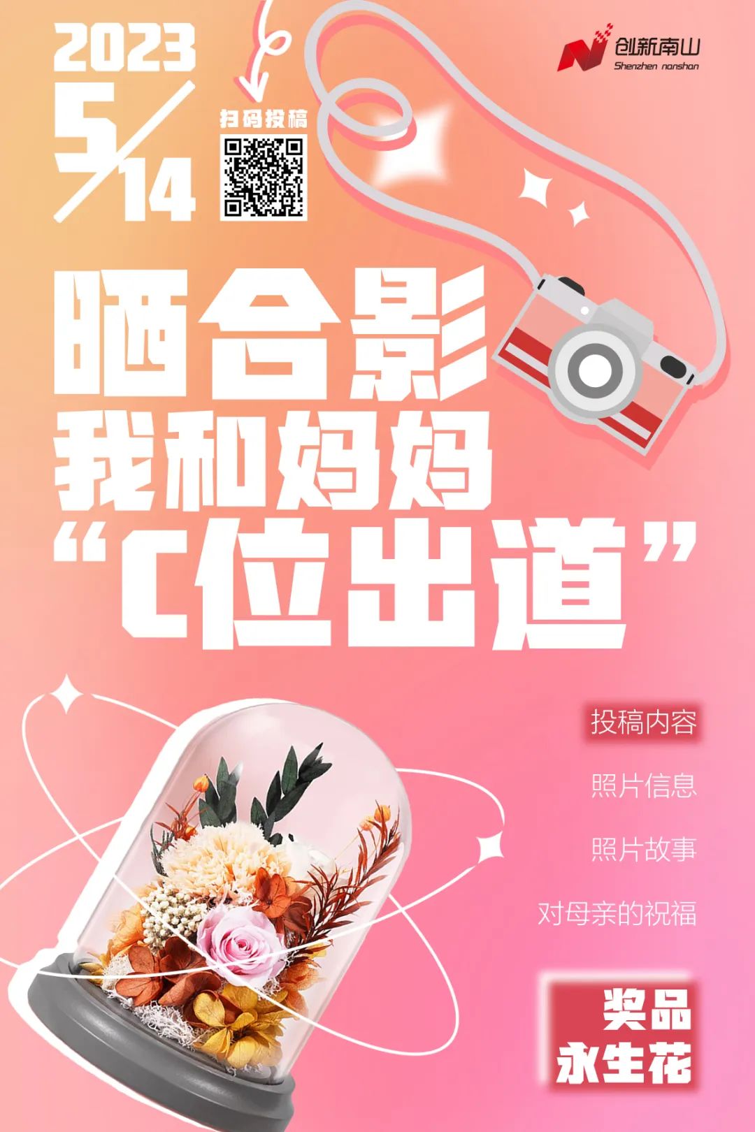 记忆很大一部分是关于人的。多年后,许多往事都淡忘了,但一些人一些事仍历历在目。母亲节,是一个为了让天下父母的爱心得以彰显、让人认真体会的节日;也是一个让天下子女的孝心受到唤醒、并精致表达的节日。母亲节即将来临,创新南山微信公众号推出“晒合影,我和妈妈C位出道”主题活动,向网友征集照片和祝福。