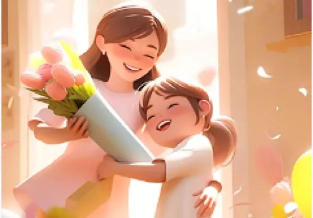 “瞬间故事”:在XX年母亲节的时候我送了妈妈一束手工花,为了记录下这个珍贵的时刻,老爸帮我们拍下了这张照片。