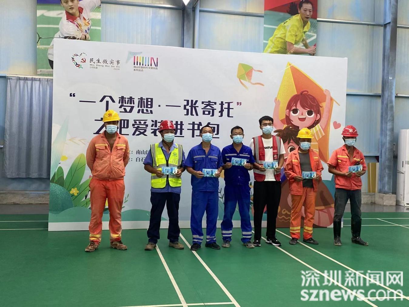 党建引领深入基层,凝心聚力为民解难,不单单是解决物质需求。沙河街道与深圳湾超级总部基地党委通过走访项目工地、意见征集等方式摸底调研工友们实际情况后,了解到:“很多来深建设者疫情至今没有回家,不少子女在家乡读书,成为留守儿童”的情况后,联动各项目部开展“一个梦想”活动,累计为50名家庭困难、品学兼优的来深建设者子女送上“梦想书包”。在给予留守儿童一些物质支持的同时,更是希望他们理解父母在外辛勤劳动的不易,鼓励他们认真学习,形成正确的劳动观。