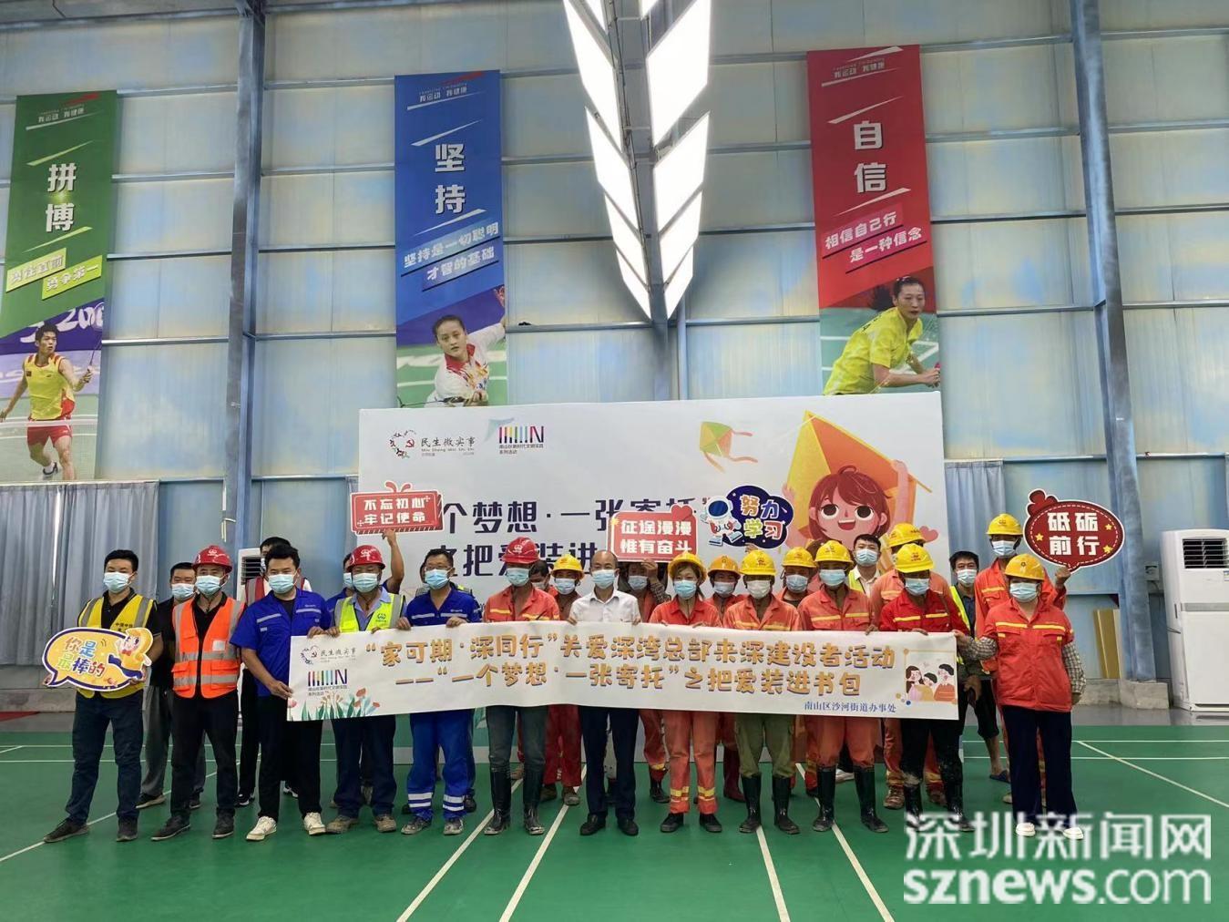 读特客户端·深圳新闻网2023年5月22日讯(记者 卢东勃 通讯员 杨双 饶国深)“吃水不忘挖井人”,因为有一批又一批的来深建设者挥洒汗水,才创造了深圳速度。目前,深圳湾超级总部约有1.2万在建工人,在走访调查中发现不少来深建设者们面临子女教育问题、个人技能提升、日常文娱空间、就医用药等诸多问题困恼。为此,沙河街道联合深圳湾超级总部基地党委组织开展“家可期·深同行”关爱深圳湾超级总部来深建设者活动,以“五个一”计划给予深圳湾超级总部来深建设者的关心关爱。