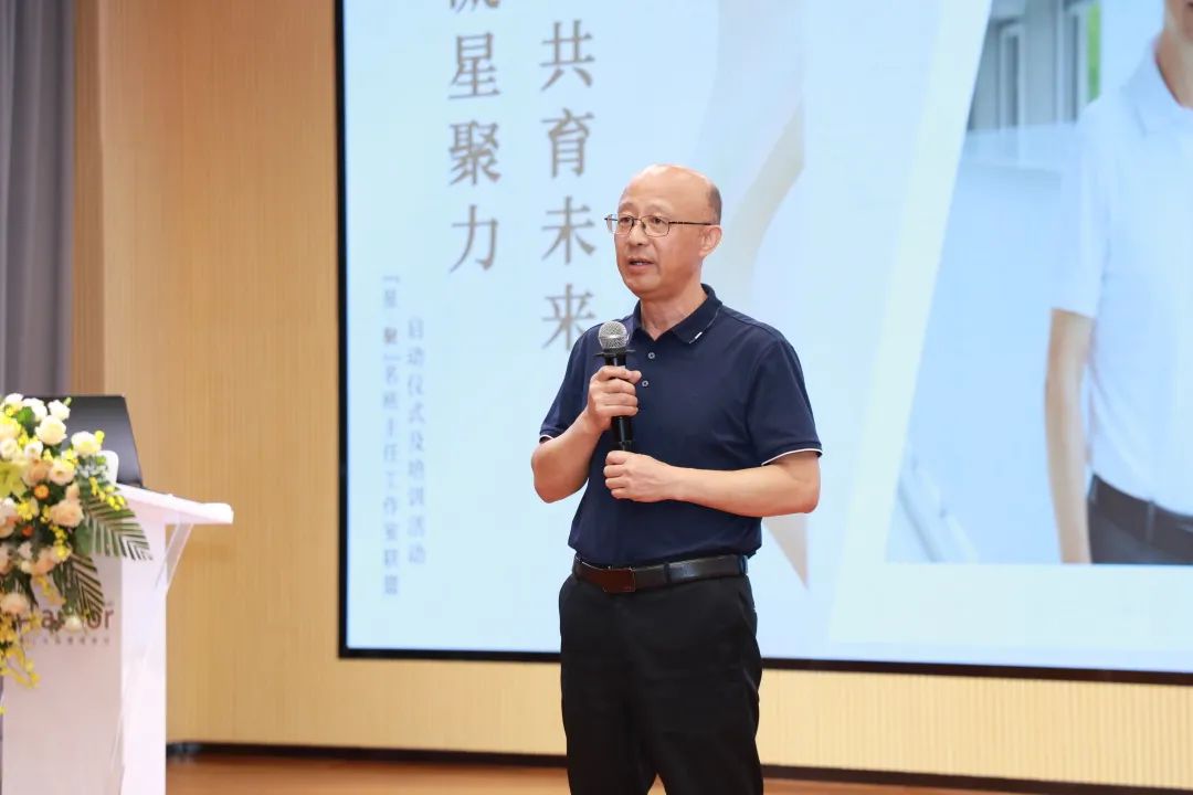 南山实验教育集团党委书记余耀贤在活动中致辞,他表示,“星·聚”名班主任工作室联盟,率先组建了阶梯式联盟队伍,以校班主任队伍为基点,带动集团分校,联动南山区兄弟校,打开了班主任队伍建设的新思路,让班主任得到更快更好的发展。