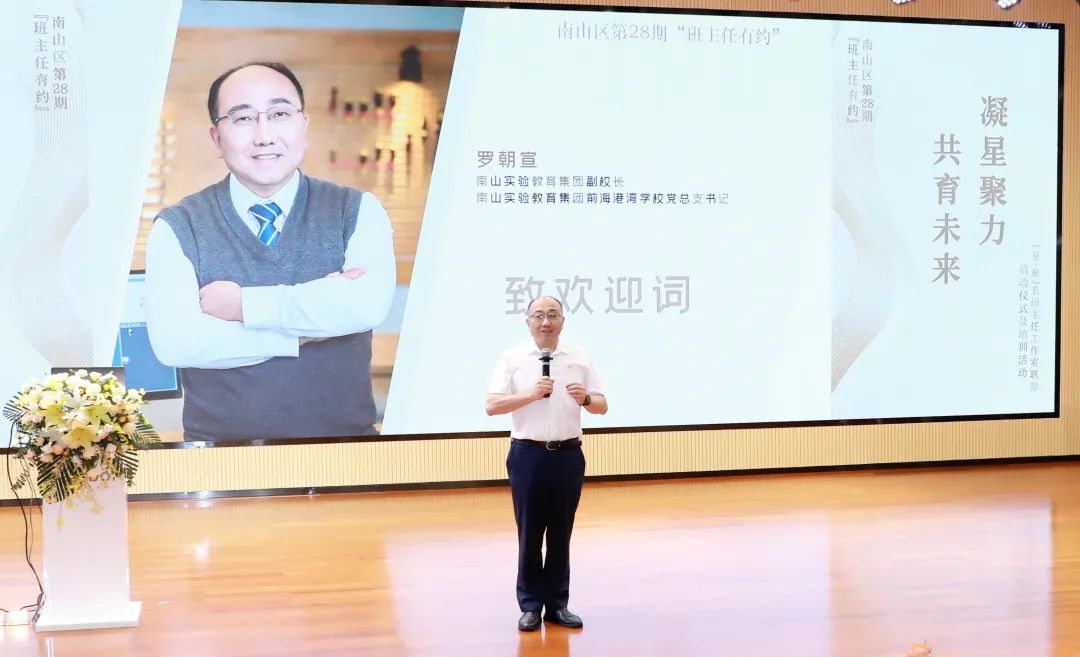 活动伊始,南山实验教育集团前海港湾学校党总支书记罗朝宣对参加活动的教育同行表示诚挚的欢迎,希望广大班主任们能够借助名班主任工作室联盟的研修活动提升班主任专业素养,给孩子们带来福音。