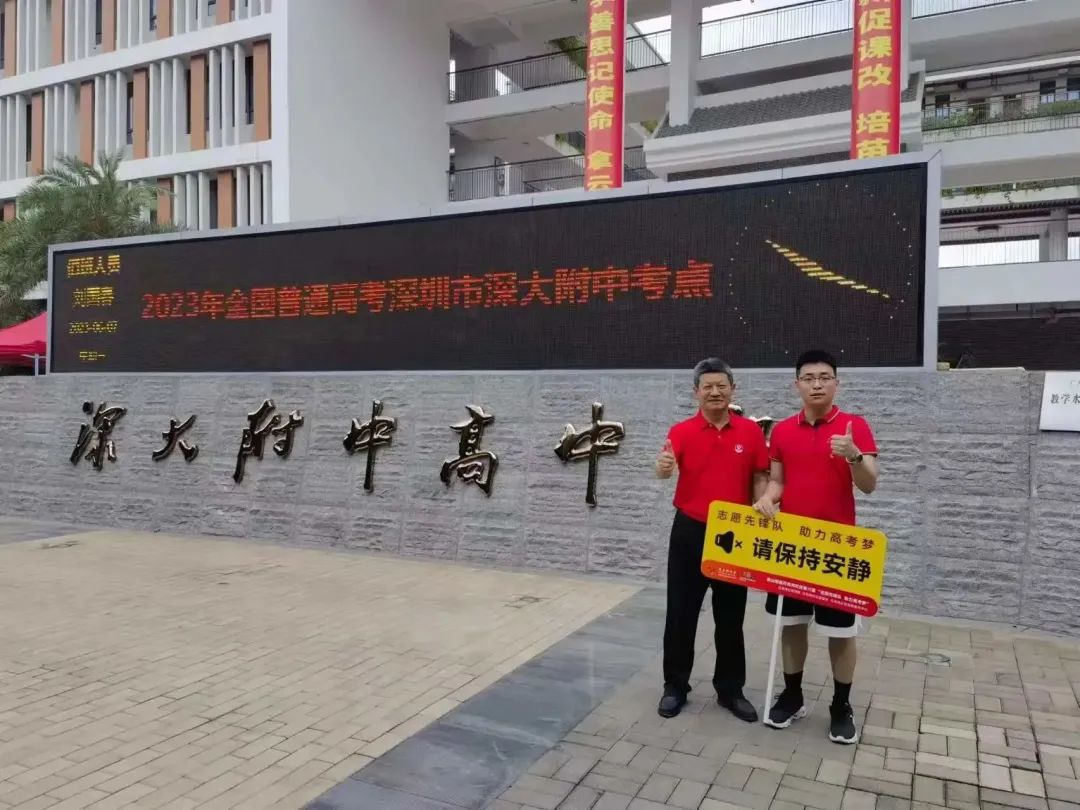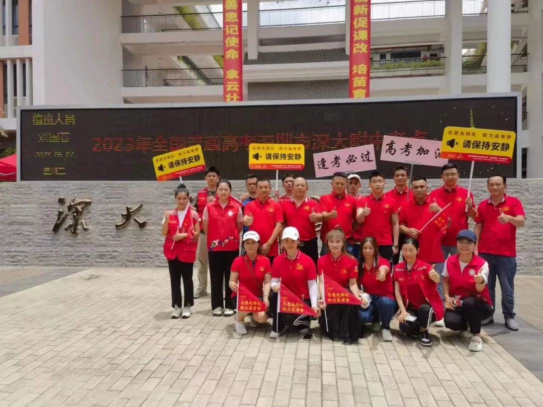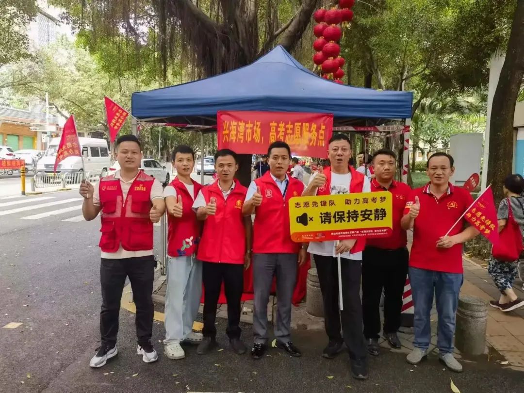 据介绍,高考三天,为了给考生们营造一个安全、安静的考试环境,月亮湾社区党委组织下属各党支部和深圳市平江商会南山分会党支部、广东湾建第一党总支深圳项目党支部、深圳市物流协会南山分会党支部、中建钢构自贸时代中心项目党支部、深圳巴士集团第五分公司妈湾车队党支部等共建单位党员义工40多人开展助力高考活动,考点现场设置了应急车辆、家长休息区、交通劝导队伍,确保考场周边安静畅通。