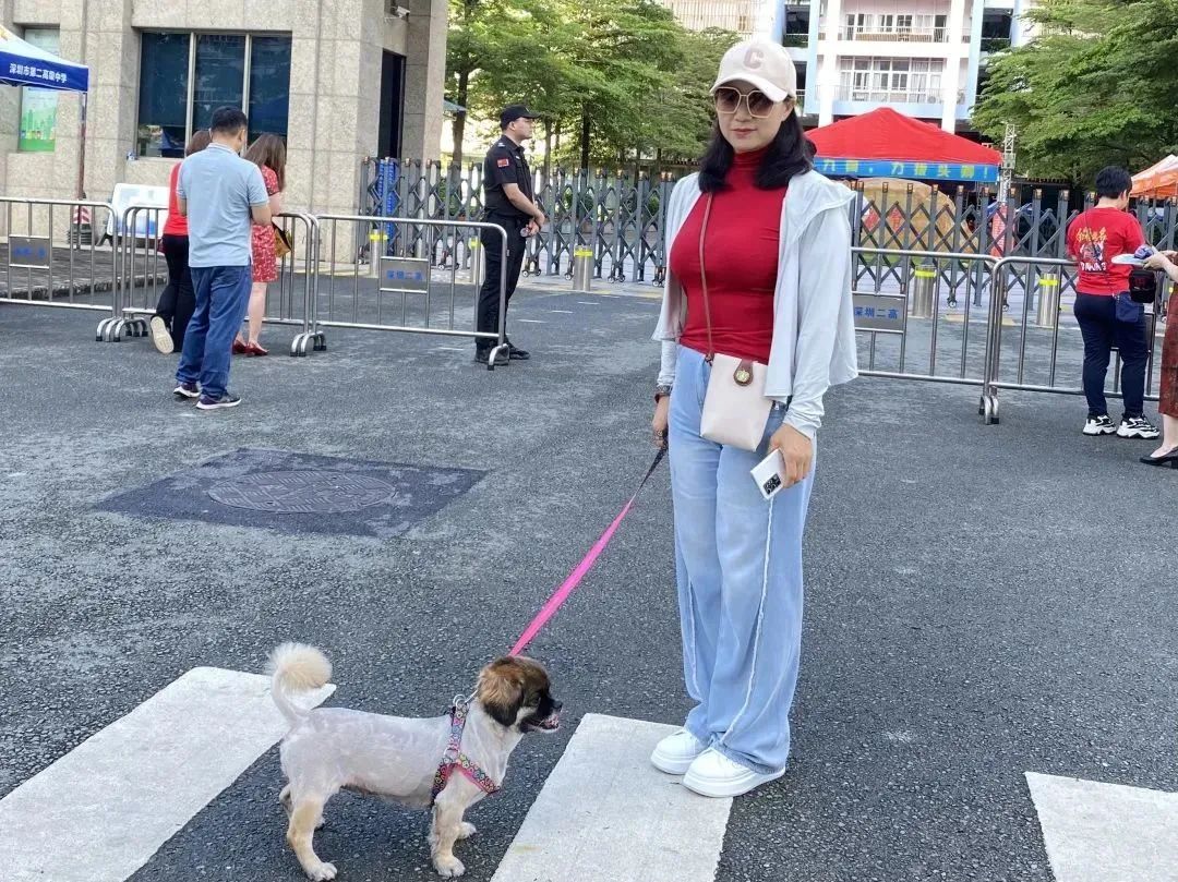 还有家长带着爱犬送考,一边遛狗一边陪考,她表示,“不想给孩子太大压力,过于紧张反而容易失误,希望孩子能保持好心态,轻松应考。”