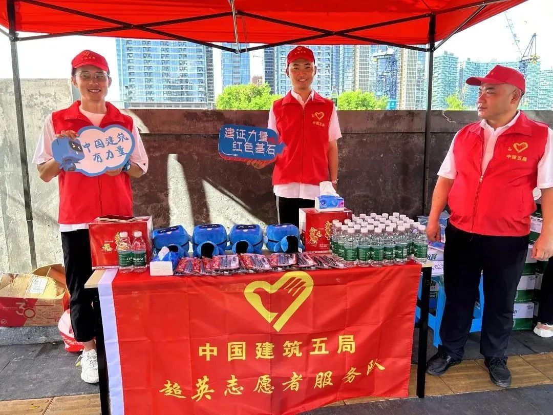 “您好!这里有矿泉水、文具等,欢迎取用。”考点现场,中建五局超英志愿者服务队设置服务摊位,提供饮用水、文具等物品,为考生及家长提供暖心服务。志愿者郭悦岩介绍,饮用水、文具等物品均为免费取用,他们希望以志愿服务的方式,为2023年高考考生助力。