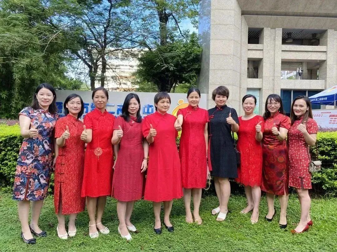 ▲深圳市第二高级中学考点,家长穿旗袍为学子助威。