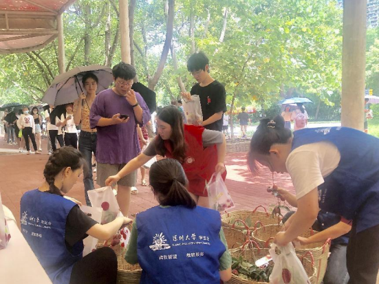 深大粤海校区荔枝品种有白蜡、妃子笑、黑叶、糯米糍、桂味、怀枝,共6个品种。荔枝林成片状分布,占地约20万平方米。今年开花的荔枝树有1571棵,结果树1218棵,坐果率78%。其中黑叶坐果率达30.7%;怀枝坐果率达35%;桂味和糯米糍坐果率达12.3%。根据不同品种果树挂果情况,今年产量预估10万斤。