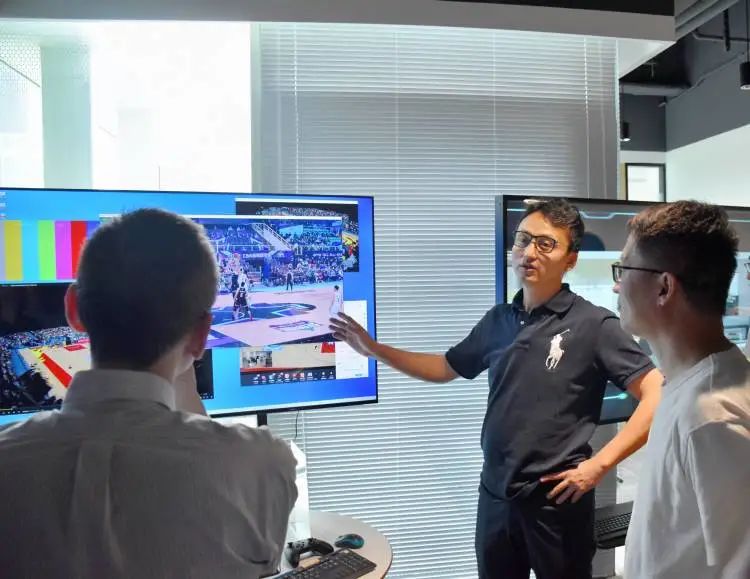 ▲沉浸视觉团队在介绍交互式沉浸视频系统的CBA转播画面