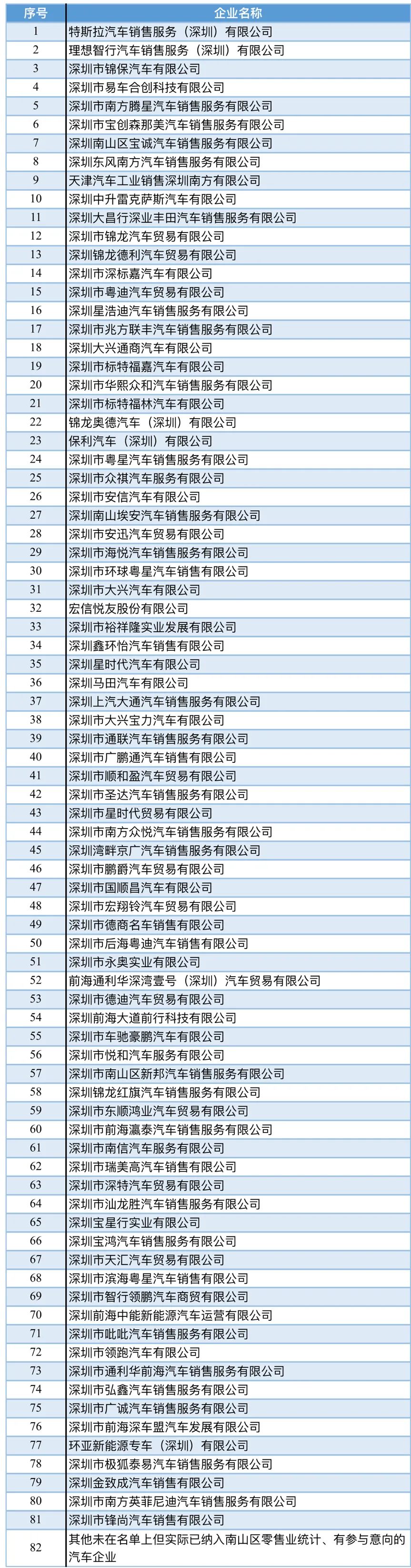 1、在参与活动的南山区纳统汽车经销企业(行业代码为“5261”,详见下表)购买汽车并在公安局交通警察局完成注册登记;