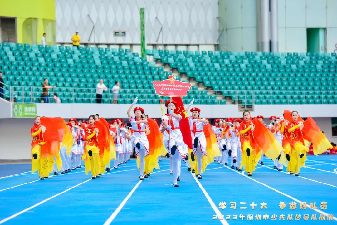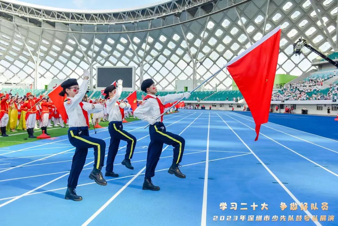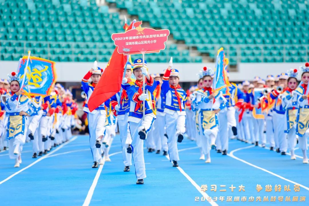 6月10日,由团市委、市教育局和市少工委主办,南山团区委、南山区教育局和南山区少工委承办的“学习二十大 争做好队员”2023年深圳市少先队鼓号队展演在深圳湾体育中心隆重举行。伴着铿锵有力的鼓号声,迈着坚定矫健的步伐,来自全市各区的21支队伍的2000余名少先队员参与了现场展演。活动吸引了3000余名少先队辅导员、家长观众到现场观看。所有参赛队伍经历了半年的刻苦训练,为现场观众呈现了一场精彩展演。