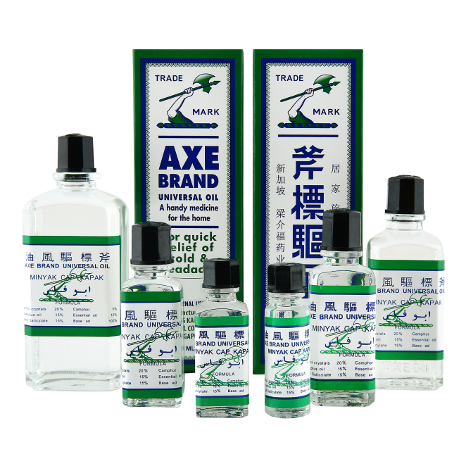 斧标驱风油拥有独特的配方,营销世界各地深受信赖90多年。斧标驱风油油色纯白、气味芳香、宁神醒脑,对付伤风鼻塞、头痛腹痛、舟车晕浪、跌打扭伤、肌肉酸痛、蚊虫叮咬等不适。