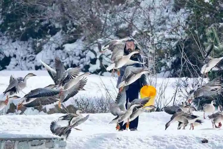 除了绘画作品外,展览现场还展出了大量摄影、书法、浮雕作品。来自南山实验教育集团荔湾小学的林予馨带来的便是摄影作品《人与自然》。作品定格的是人类为过冬的大雁补充食物,大雁展翅腾飞的和谐瞬间。