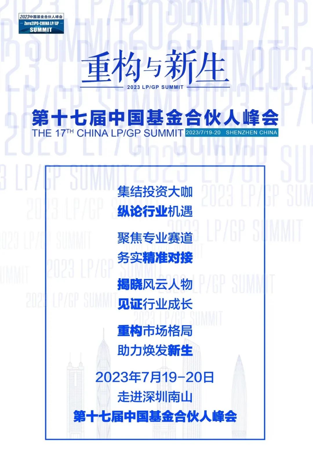 据了解,本届峰会邀请了百余投资大咖到场,设置多元行业热门话题,将举办20+小时干货分享,分享2023投资界关键词、探讨股权投资新策略,从专业视角解读早期投资生态、母基金、金融机构、科技投资、千亿产业基金投资之道。峰会设置LP&GP对接会,围绕芯片半导体、科创、数字经济、医疗健康等热门赛道进行高效率、零距离的充分交流。峰会还针对不同人群需求,设立GP募资路演环节,搭建多样化LP/GP高效对接交流平台,精准锁定募资机会,对接股权投资头部力量。“投资界TOP100”2023年度评选结果也在本次中国基金合伙人峰会隆重发布,现场也将揭晓《2023年中国股权投资基金有限合伙人榜单》。
