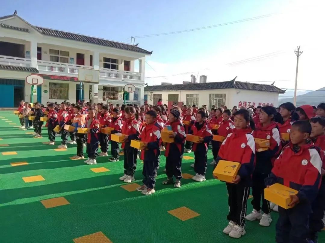 还按计划送上大米、衣物、文具等物资