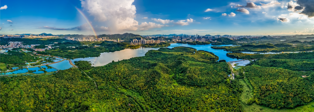 远眺西丽水库,湖畔草木峥嵘,梦想蓄积勃发