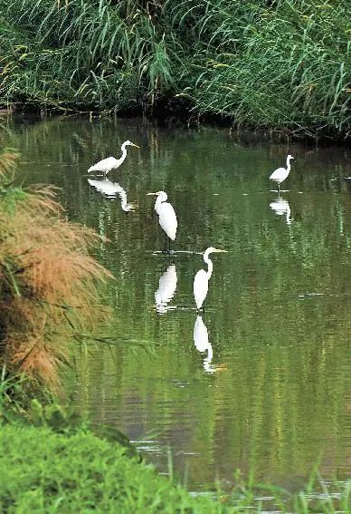 丛林翠绿风色妍,清波荡漾鸟语甜。