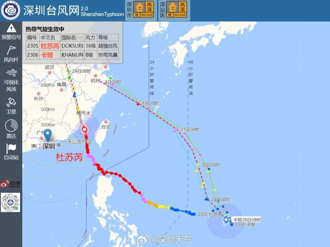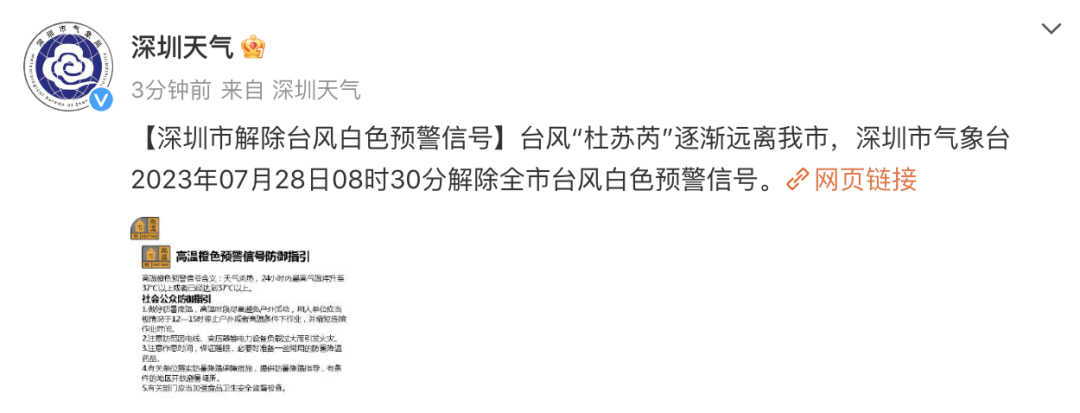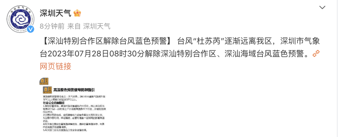 台风“杜苏芮”逐渐远离深圳市,深圳市气象台2023年07月28日08时30分解除全市台风白色预警信号。