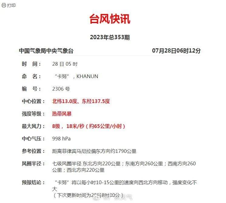 今年第6号台风“卡努”(Khanun)于28日凌晨在西北太平洋上生成,名字来源:泰国,意义:一种泰国水果。