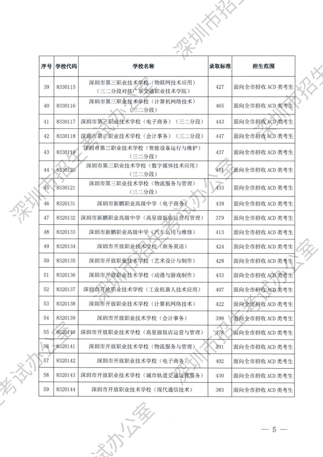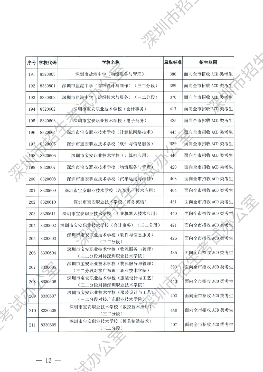 招生范围中:A类指具有深圳户籍的考生;C类指享受市政府优惠政策人员的子女;D类指除A、C类考生外,符合参加统一划线录取条件的考生。