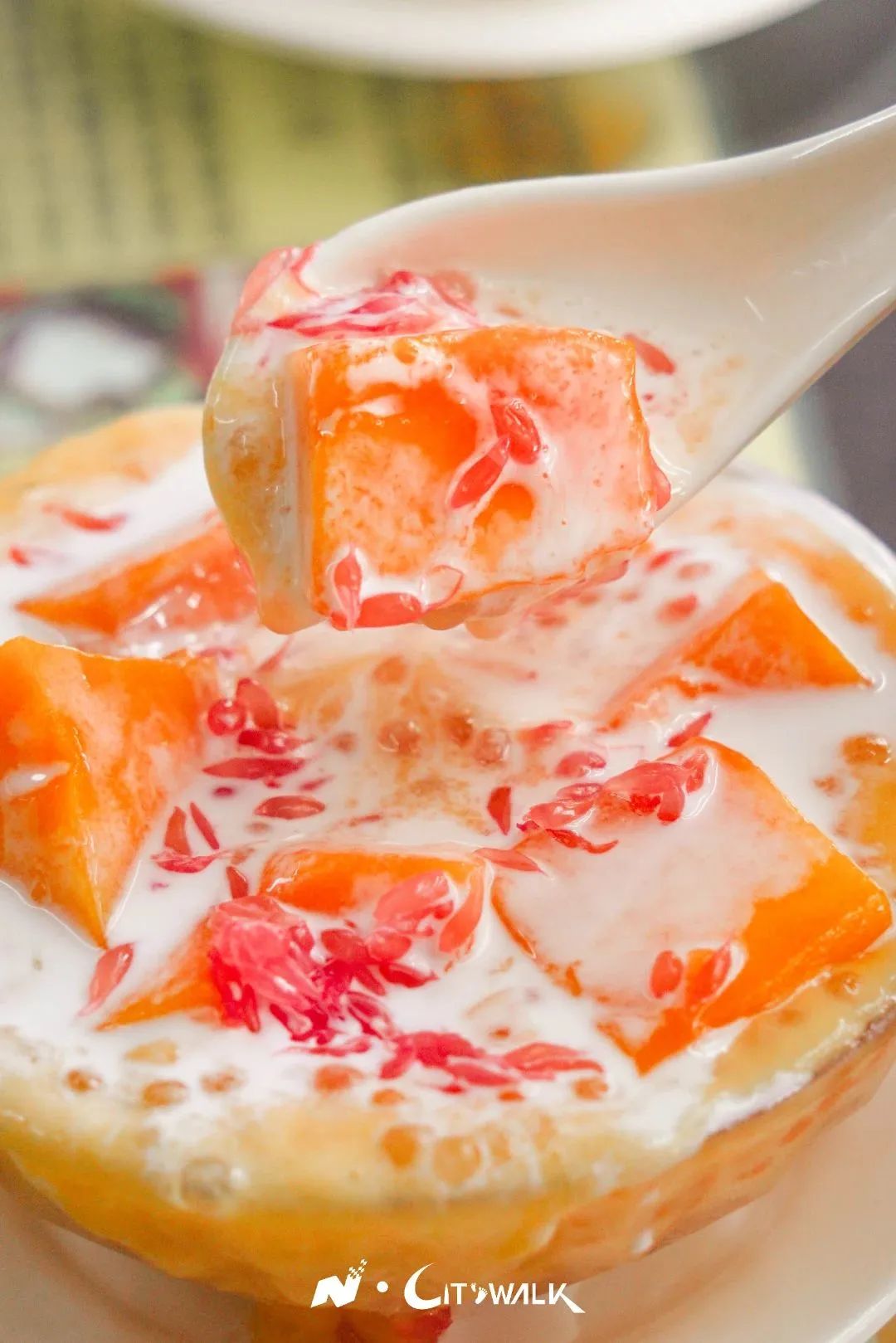 到店必点的招牌杨枝甘露用料十足,超大块的新鲜芒果、饱满的红西柚果粒、晶盈剔透的西米,再加上香甜丝滑的椰奶,整个份量多到快要溢出!