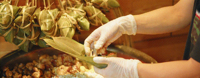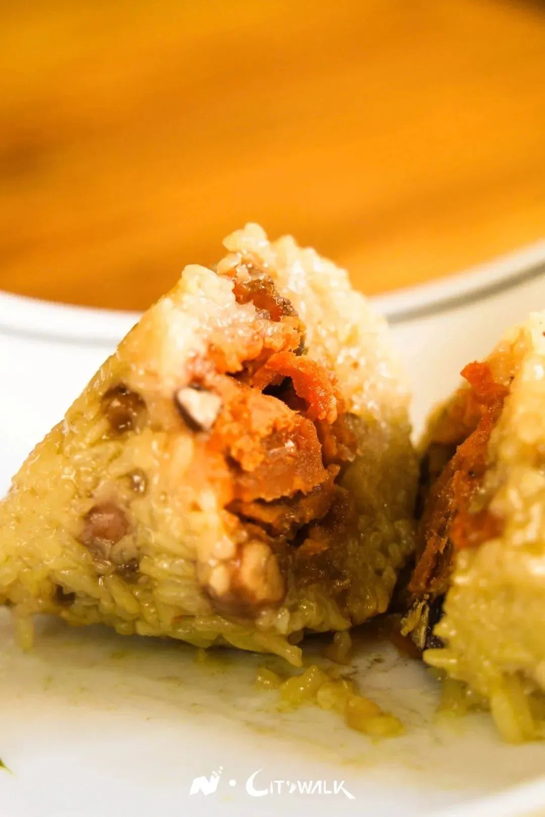 这里的粽子都是现包现做,最便宜的不到10块。扒开裹着的粽叶,粽子的清香味瞬间扑鼻,超大个的金色蛋黄散发着诱人色泽,五花肉一抿就化,还有虾仁、干贝、板栗,口感层次丰富,让人一口就爱住了。