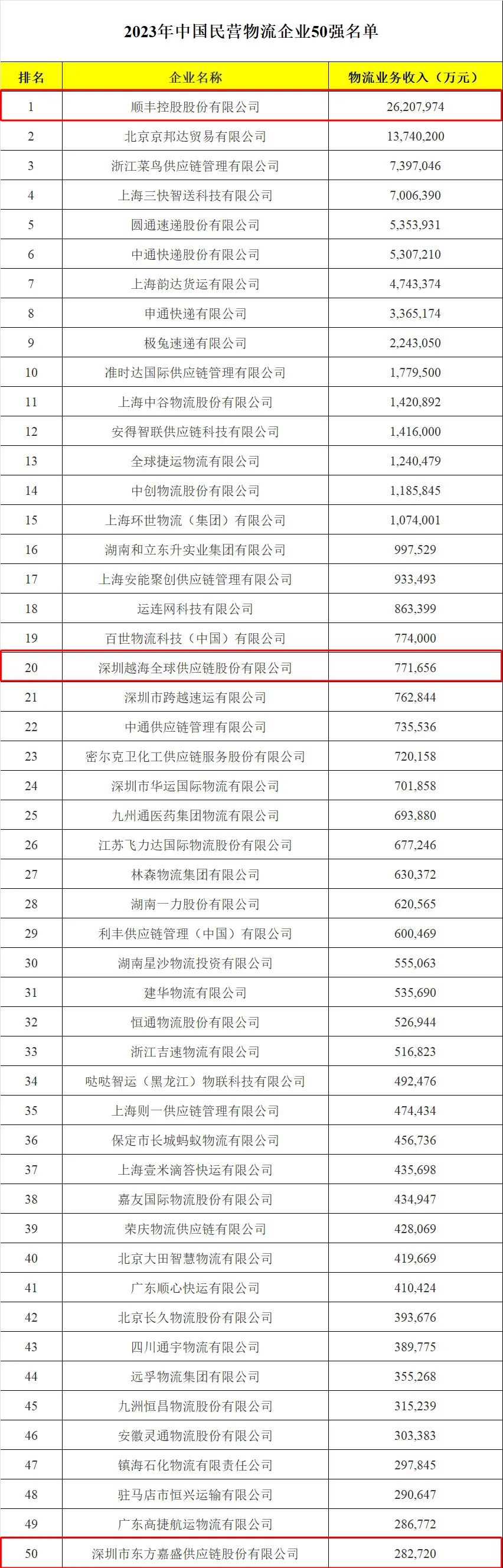 在“中国物流企业50强”中,有19家是民营企业,成为物流头部企业重要主体。其中,顺丰、京东物流、菜鸟分别位列“民营物流企业50强”榜单前三名。