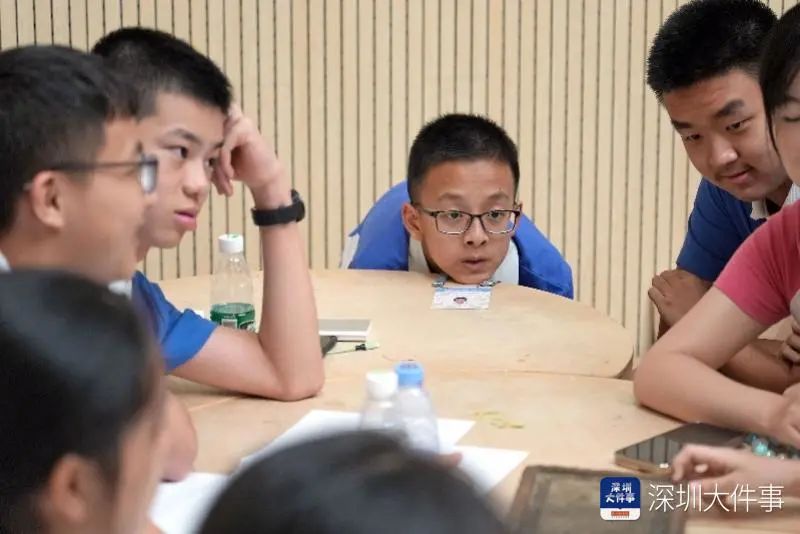 8月7日下午,在南山少年团参观了“古代南山”主题展后,就来到了南山博物馆互动教育室,南山博物馆少年志愿者讲解员吴祎凡、蒋正昊与大家进行答疑互动,两位男生凭借自身积累的历史文化底蕴和出色的口才,赢得了在场师生们的阵阵热烈掌声。接下来,吴祎凡、蒋正昊也将按既定安排,与大家一起完成接下来的学习与调研任务。