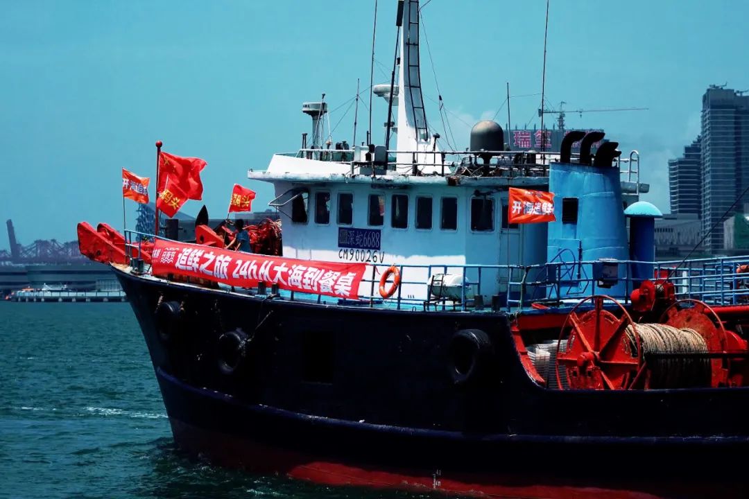 “休息”了3个半月的渔船身插红色旗帜、身披红色条幅,“开海追鲜”“追鲜之旅——24h从大海到餐桌”等标语在蔚蓝海面上迎风飘扬,展现了渔港开海时节的热闹氛围。沉寂几个月的渔港,又迸发出了勃勃生机。