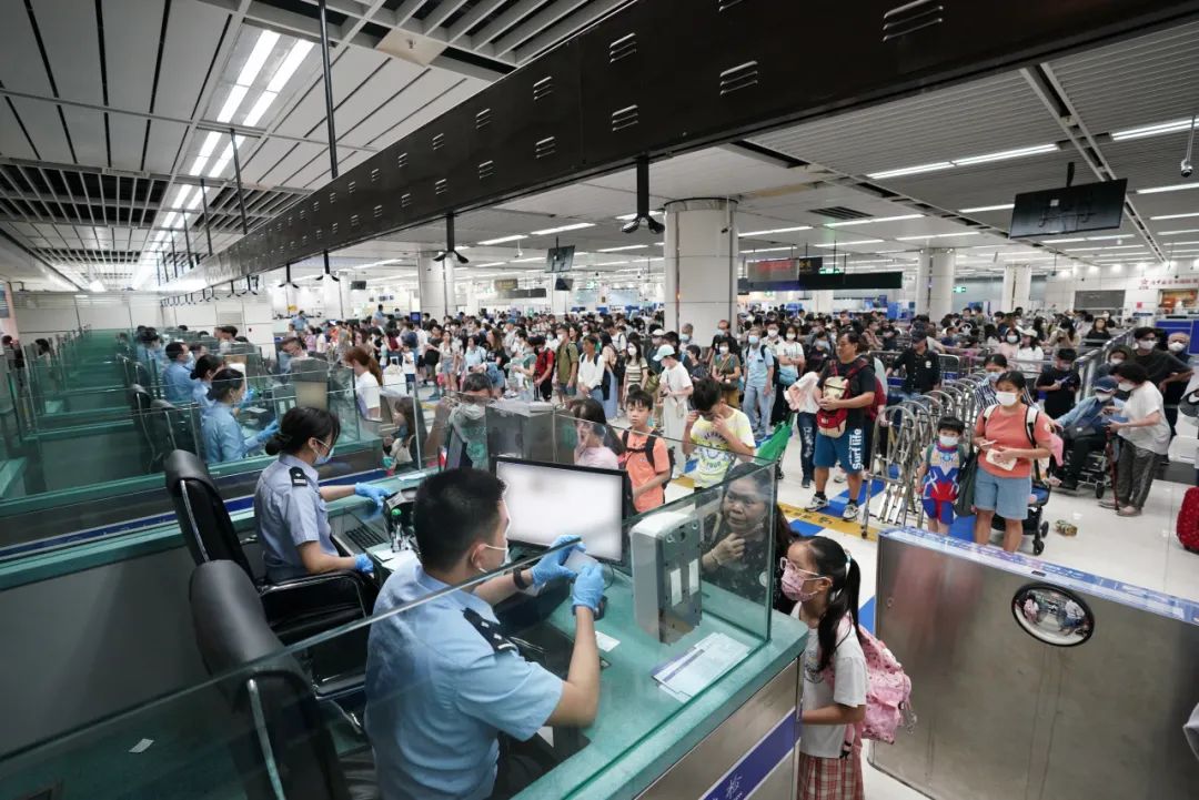 ▲深圳湾边检站开足查验通道确保旅客顺畅通关
