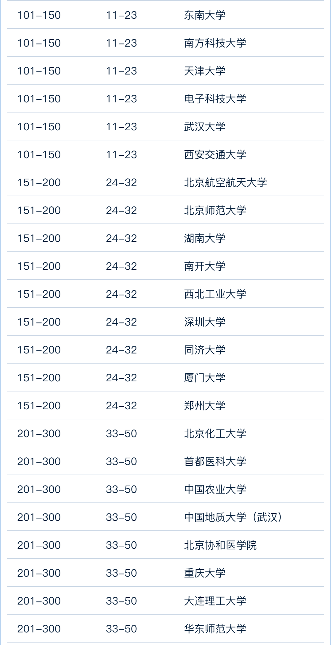 中南大学(93名)与南京大学(94名)进步明显,首次跻身全球百强。