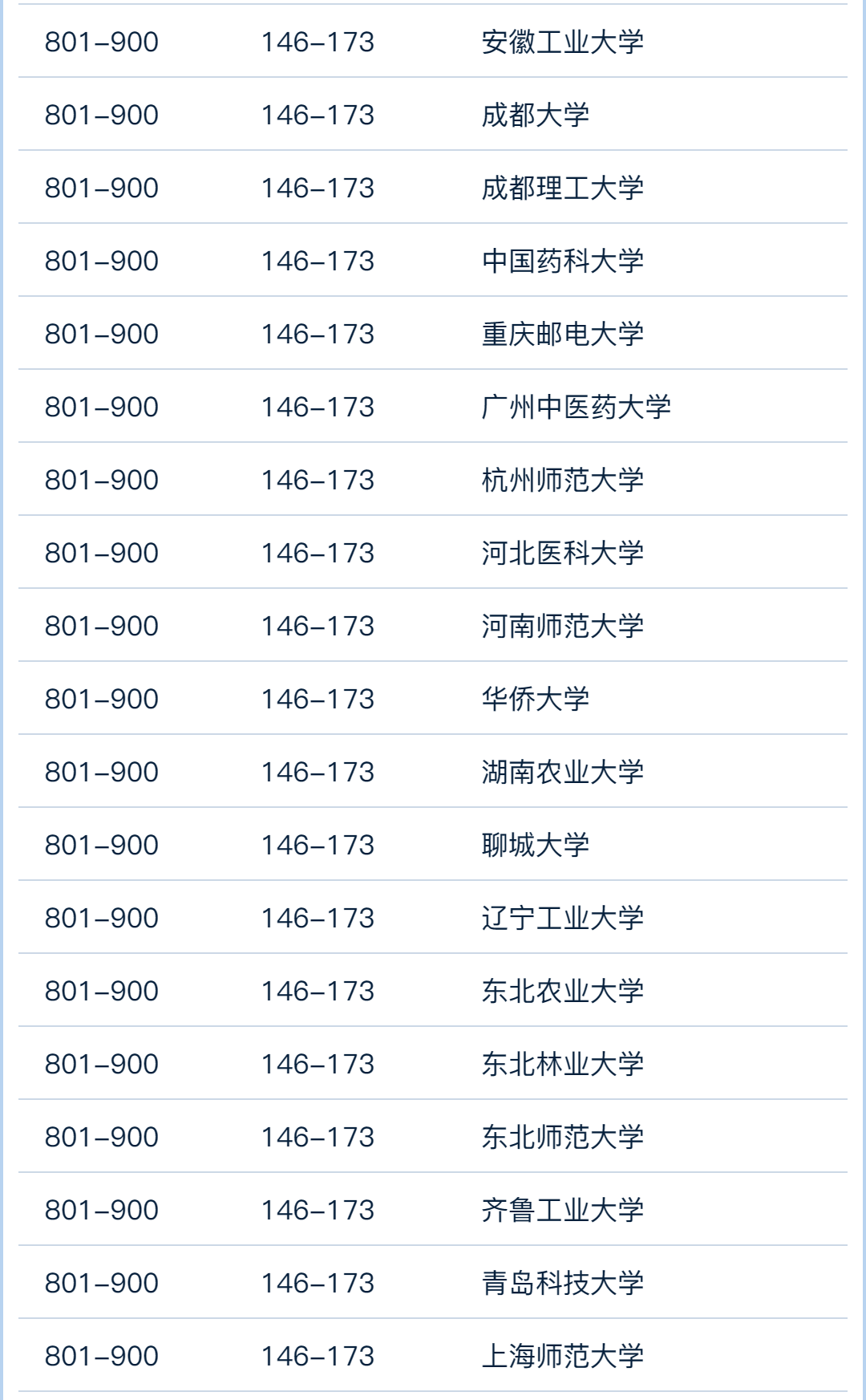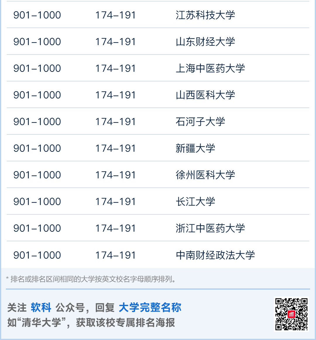 注:排名或排名区间相同的大学按英文校名字母顺序排列