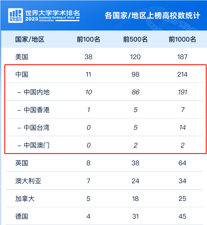 至此,已有10所中国内地大学凭借扎实的学术产出位列世界百强,中国内地百强高校数量也超越英国的8所,位列全球第二。