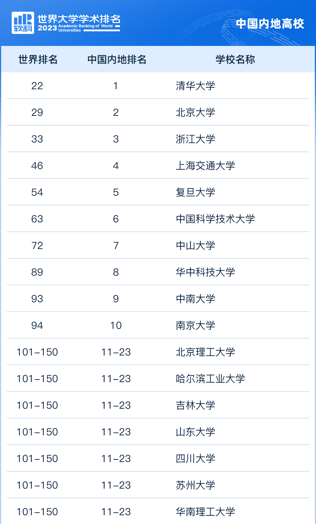 排名:位居中国内地高校排名11-23名区间,世界排名101-150名,全省排名跻身三甲。