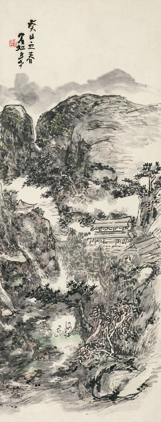 《莲花峰初晴》是荣宝斋珍藏的黄宾虹佳作,是黄宾虹以书入画的风格代表,笔墨苍润厚重,结构堆叠上又不失严谨,用笔有力、精湛。是黄宾虹晚年至少八十岁之后的作品,也是“黑宾虹”时期的典型面貌作品。