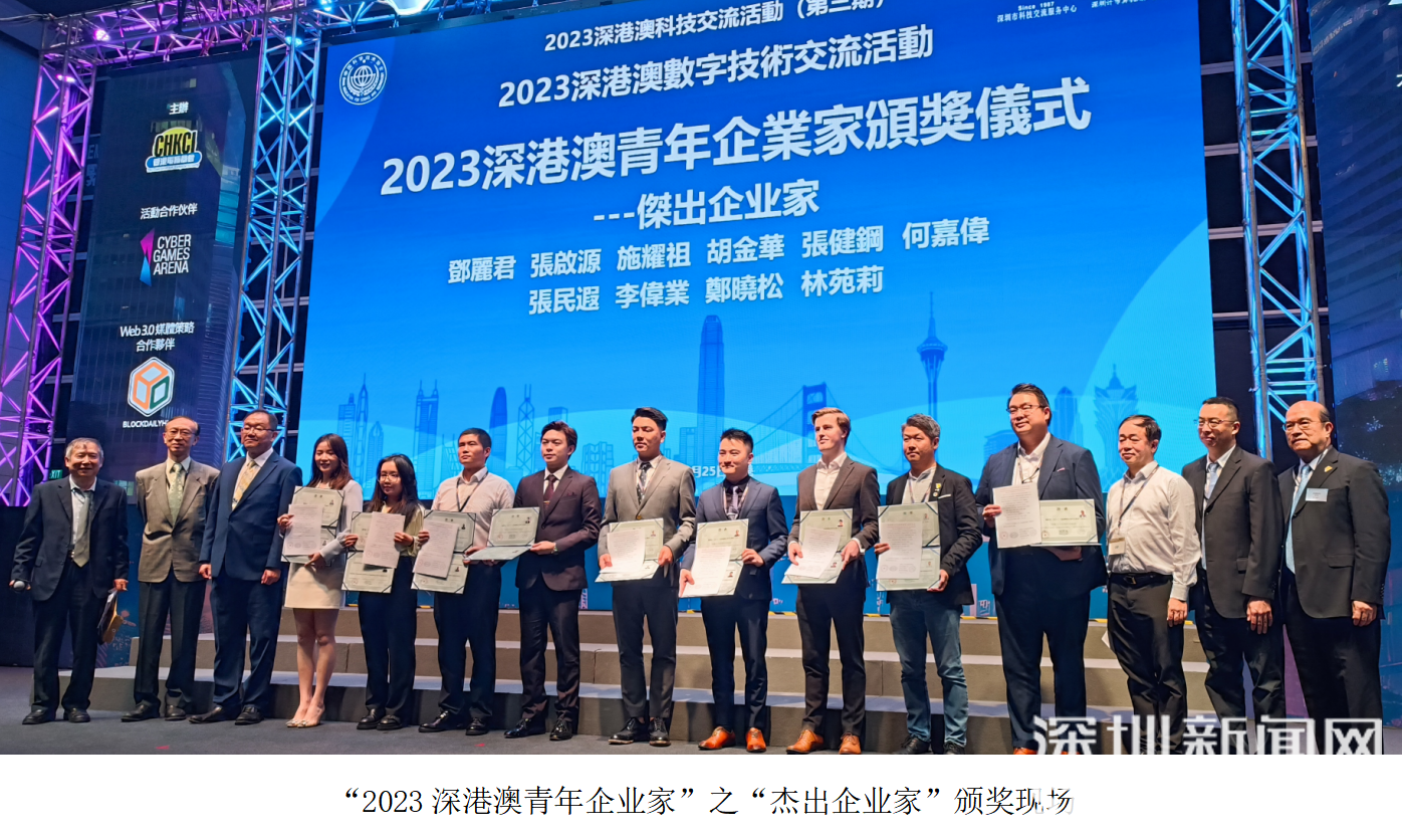 据悉,2023年(第二届)深港澳优秀青年企业家评选活动由深港澳人才交流与资质互认委员会联合深圳市计算机用户协会、香港资讯科技联会、澳门智慧城市联盟协会举办,通过对候选人所领导企业经营业绩、行业知名度与影响力、社会声誉等多方面表现综合评估,从众多候选人中遴选出最终的28人,评审结果及颁发证书在深港澳三地科技界互为认可。