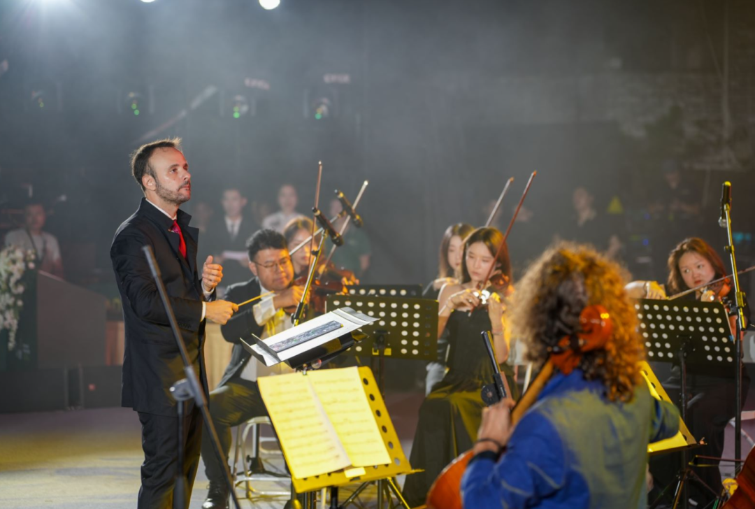 8月28日晚,中外音乐家一同演奏名曲《天堂电影院》《坦克雷迪》序曲——“我充满激情”,小提琴、竖琴等乐器变幻出无数音符,带着市民游客一同漫步在音乐世界里。在华丽、优雅的音乐旋律中,活动开幕式在南头古城南门拉开序幕。