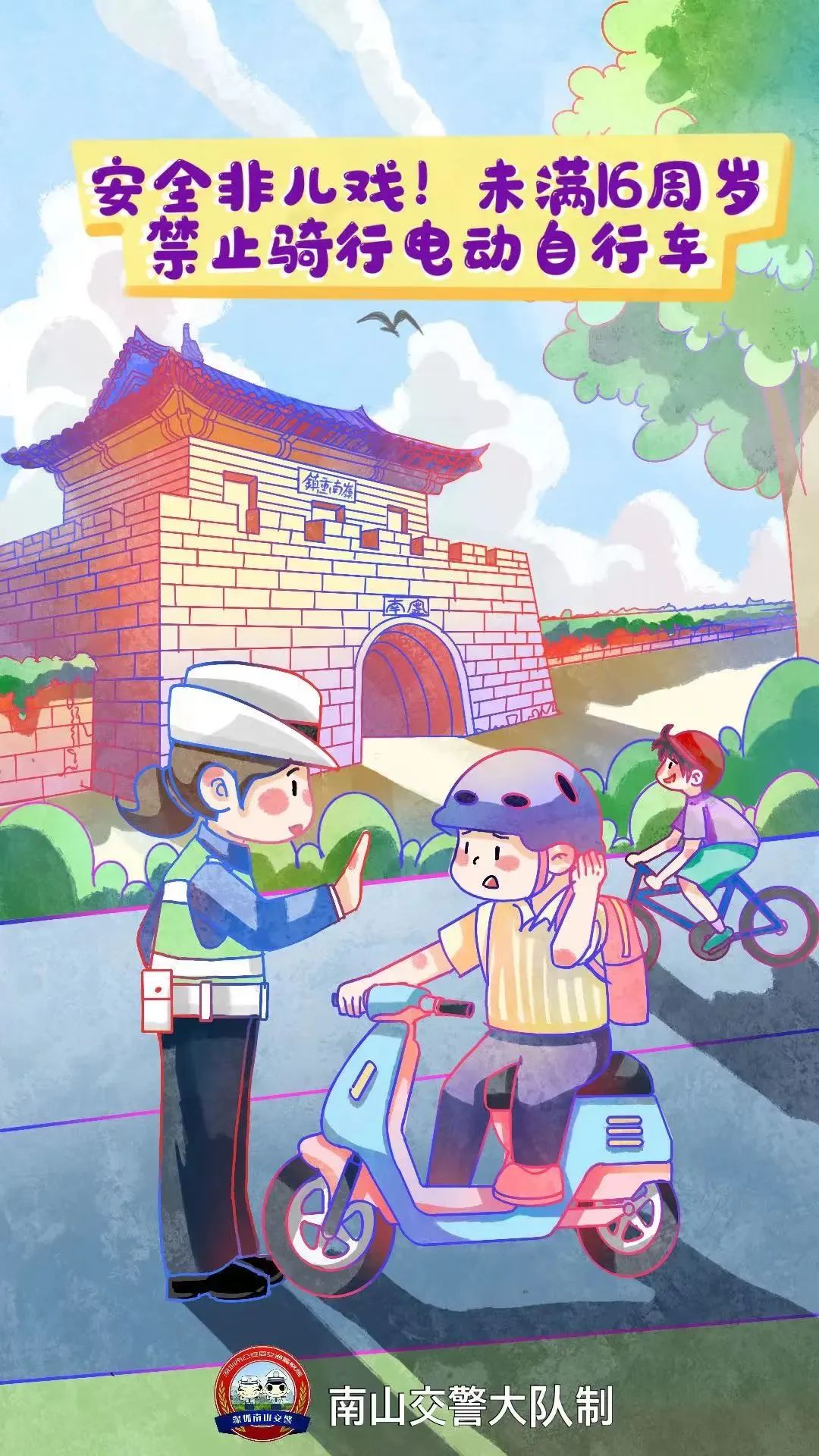 5.驾驶合法车辆上路,禁止三轮车载送学生,不要让不满12周岁的孩子骑行共享单车、自行车,不要让不满16周岁的学生骑行电动自行车,不要让孩子乘坐三轮车。
