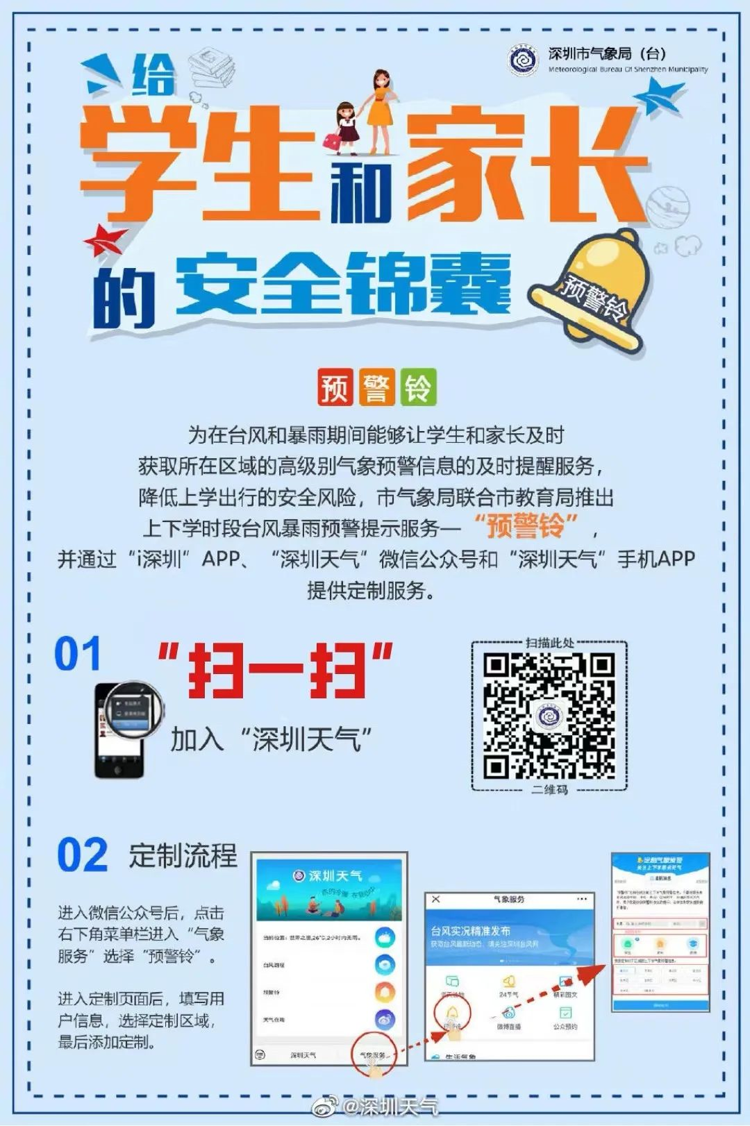 3.“苏拉”影响期间,请及时关注深圳市气象台发布的最新预报预警信息,也可以通过深圳天气微信、微博、App等渠道主动获取气象信息。