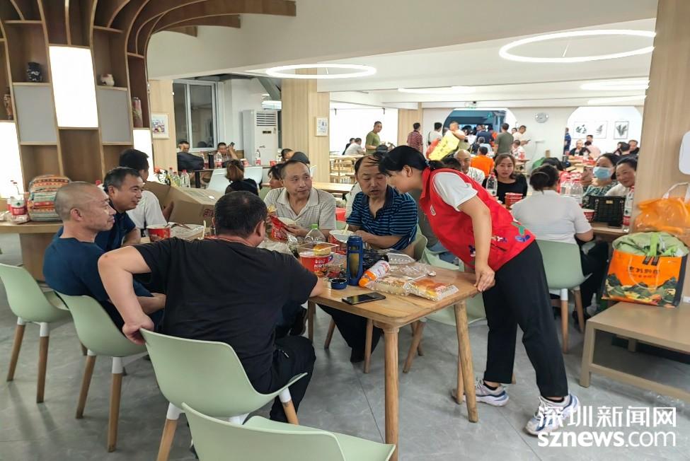 在避险点了解工人诉求,查看饮食情况