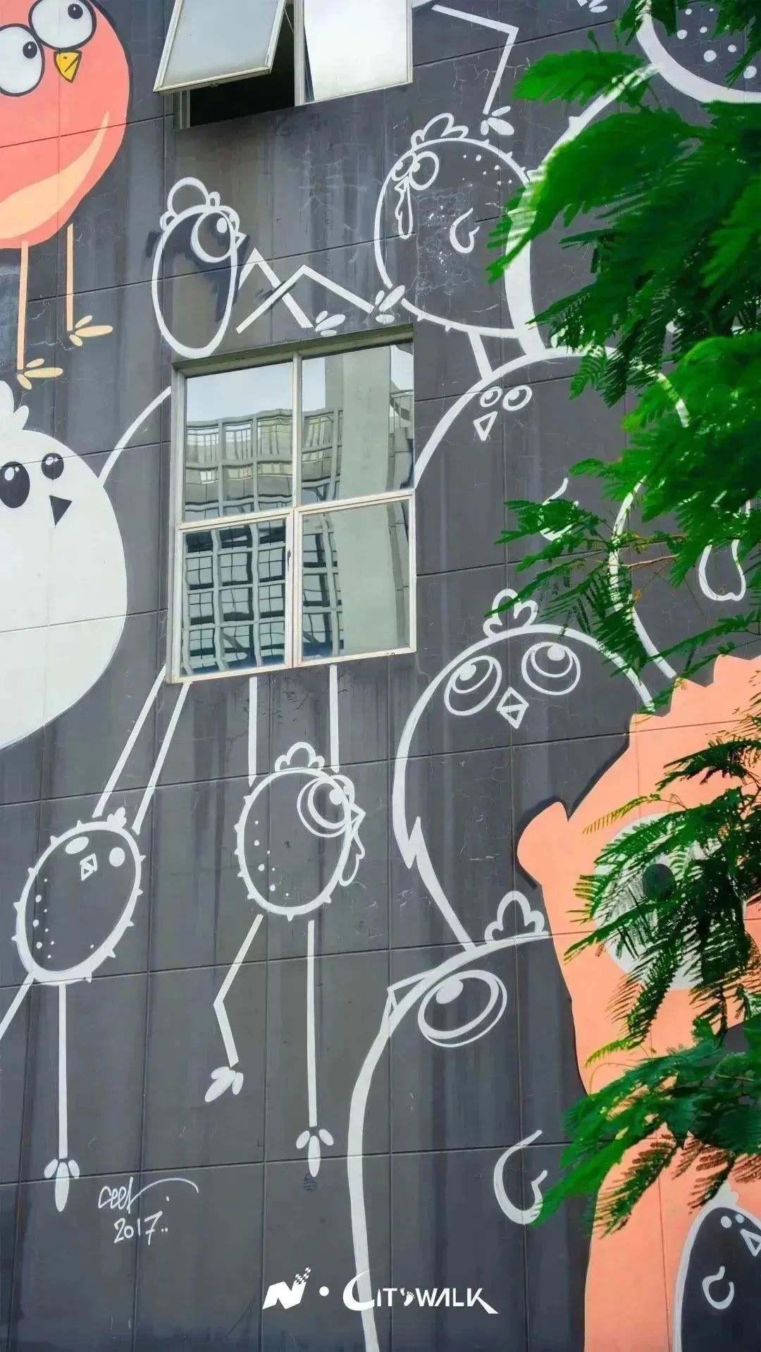 建筑外墙面布满了绚烂大胆的涂鸦彩绘