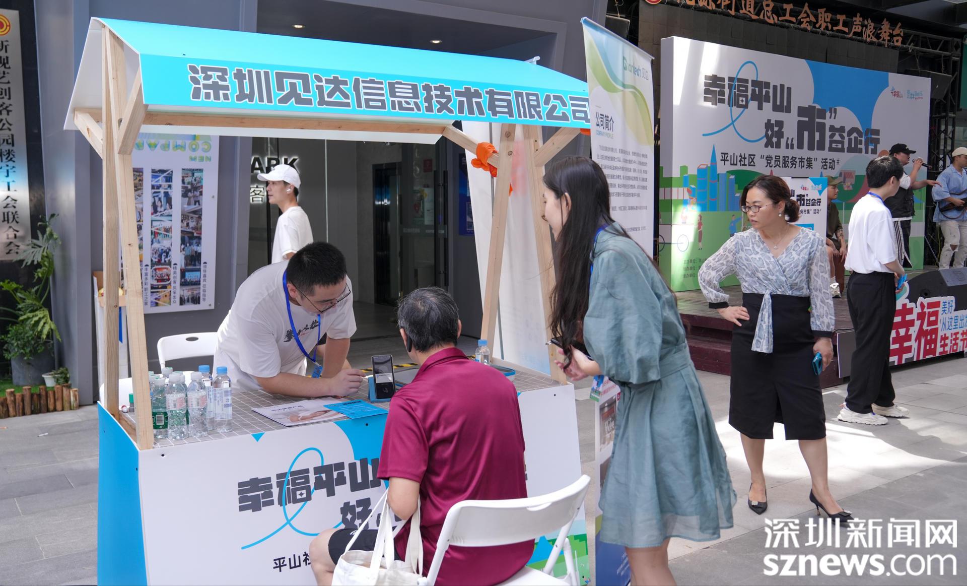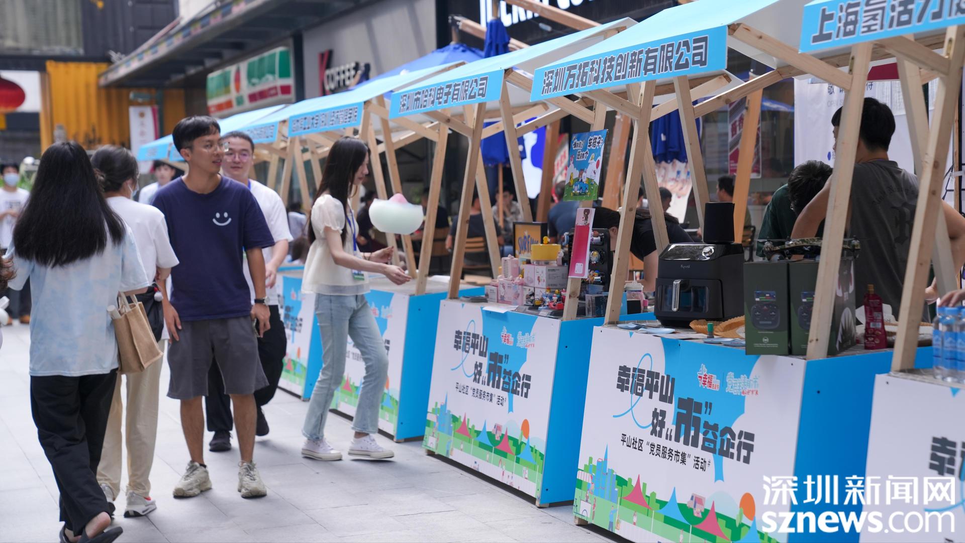 本次活动由平山社区党委主办、新视艺创客公园、南山云谷创新产业园、大学城创业园、世外桃源创意园、尚美国际联合主办,深圳市政通文化创意有限公司承办。市集以社区党委“搭台”、园区企业“摆摊”、员工居民“赶集”的模式,打造集党员服务、园区互动、校区融合、企业展示、企业服务、“三区”交流于一体的社区新场景。区直部门、街道、社区、高校、企业近30家单位面对面互动、交流、洽谈,超过300名企业员工、居民畅享市集便民服务,现场热闹非凡。