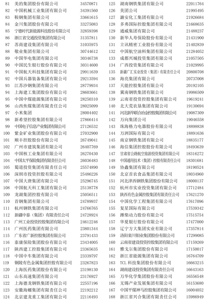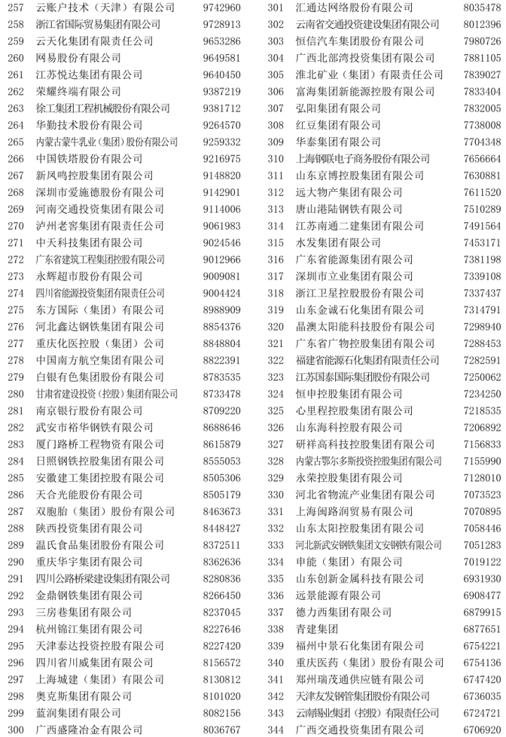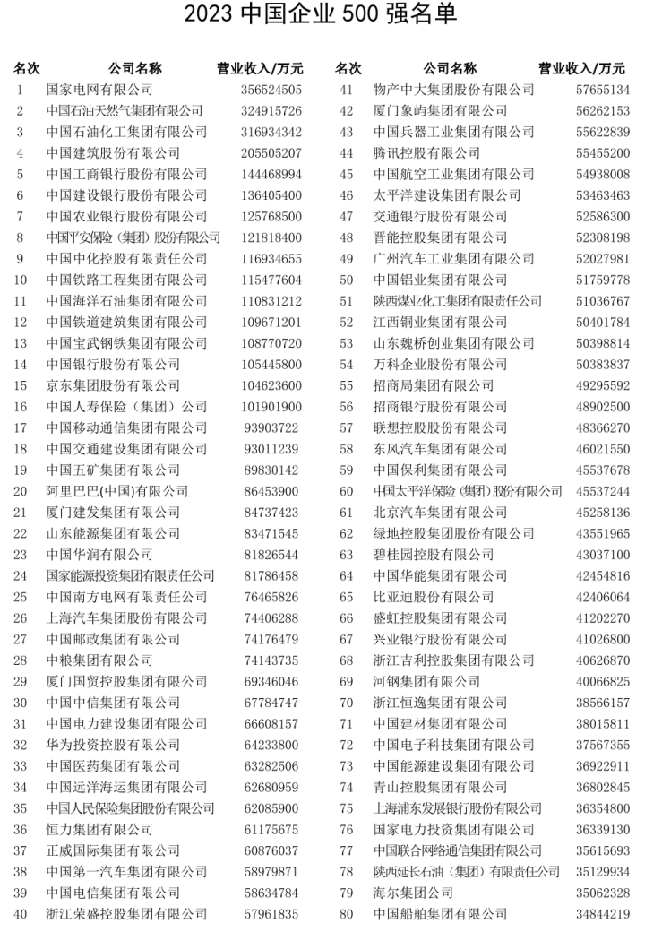 2023中国企业500强排行榜公布