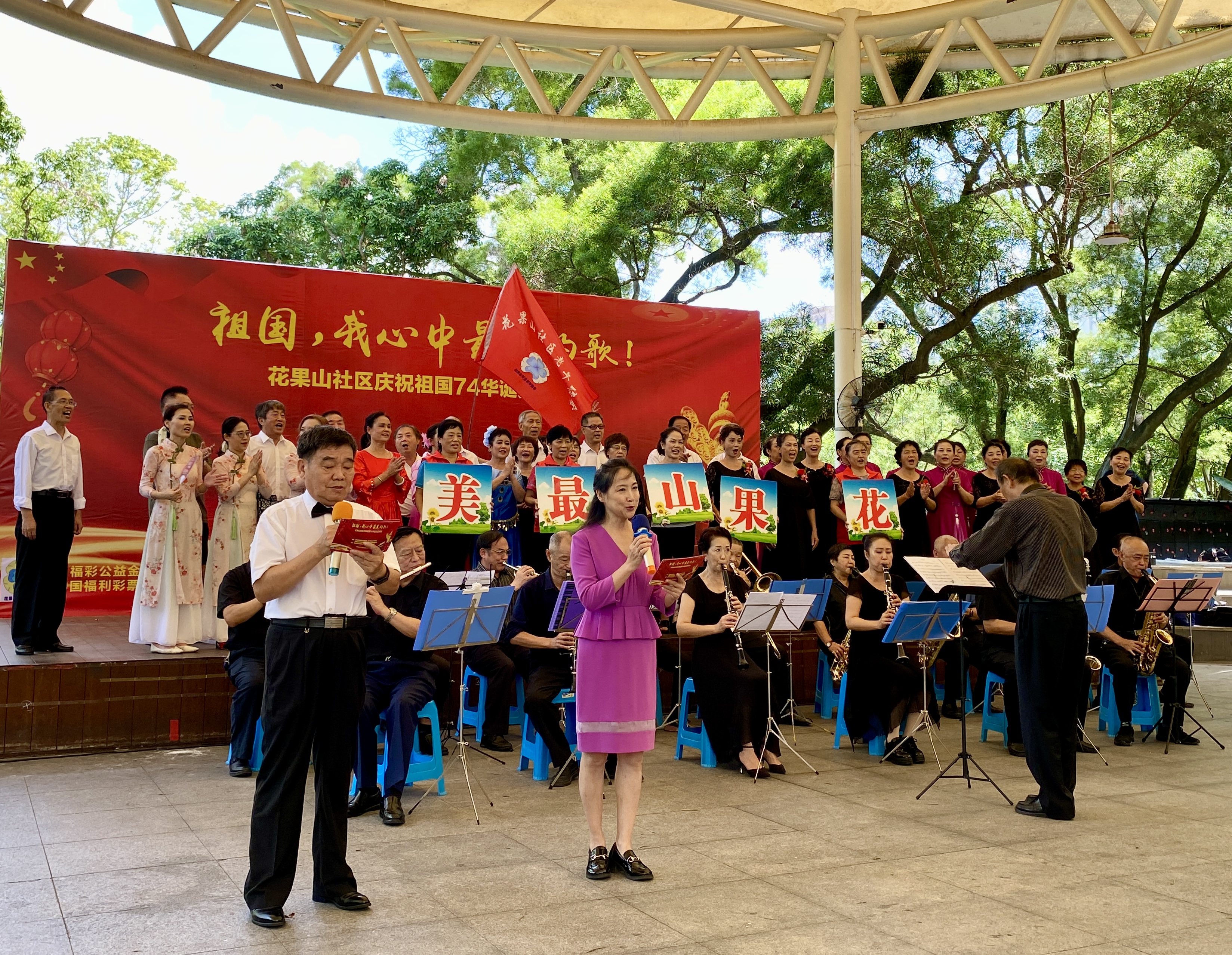 深圳新闻网2023年9月28日讯(记者 卢东勃) 9月27日上午,招商街道四海公园大舞台坐满了观众,花果山社区以“祖国,我心中最美的歌”为主题的庆祝中华人民共和国74华诞的文艺演出在这里举行。
