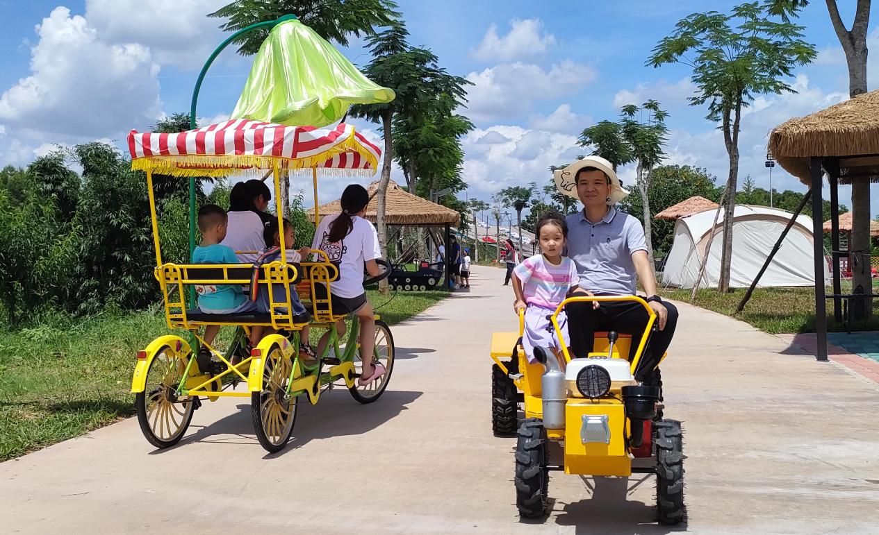 因为目前天气还比较炎热,景区水上冲关体验乐园依然最受小朋友们的欢迎。其次,蹦蹦云、粉红沙滩及其它无动力乐园永远是孩子们最愿意花时间逗留的地方,亲子牧场也是家长遛娃打卡的必去之地;而年轻人则热衷于租赁一辆自行车、坦克车或拖拉机,载着一家人悠闲地沿途打卡游玩。